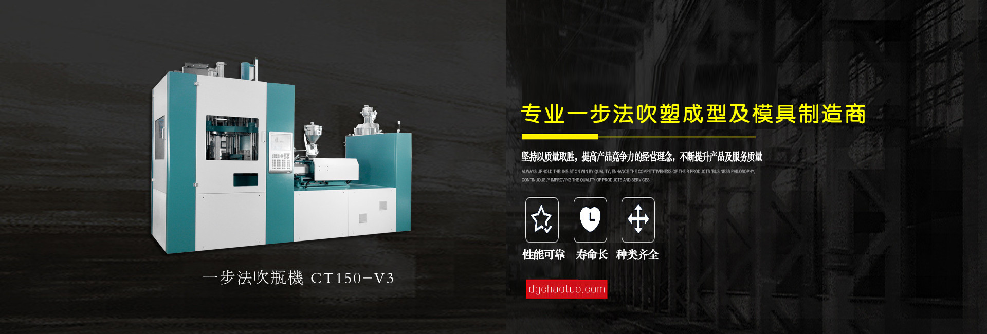 東莞超拓機(jī)械有限公司是一家專業(yè)設(shè)計生產(chǎn)一步法注吹機(jī)及相關(guān)配套模具的制造企業(yè), 公司自成立至今,始終以市場為導(dǎo)向、科技為基礎(chǔ)、質(zhì)量第一、用戶至上為服務(wù)宗旨,并一直在跟進(jìn)和學(xué)習(xí)世界上先進(jìn)的“注拉吹”中空成型技術(shù)專業(yè)領(lǐng)域配件制造和檢驗(yàn)技術(shù),不斷地創(chuàng)新求異,其中PPSU奶瓶領(lǐng)先國內(nèi)同行業(yè),堅(jiān)持“超越拓展,品質(zhì)保證”的企業(yè)文化理念,為客戶提供上乘服務(wù)。公司總經(jīng)理姜業(yè)東攜全體員工衷心感謝新老客戶的支持和關(guān)愛,竭誠歡迎各位朋友蒞臨指導(dǎo)與合作,共圖發(fā)展。